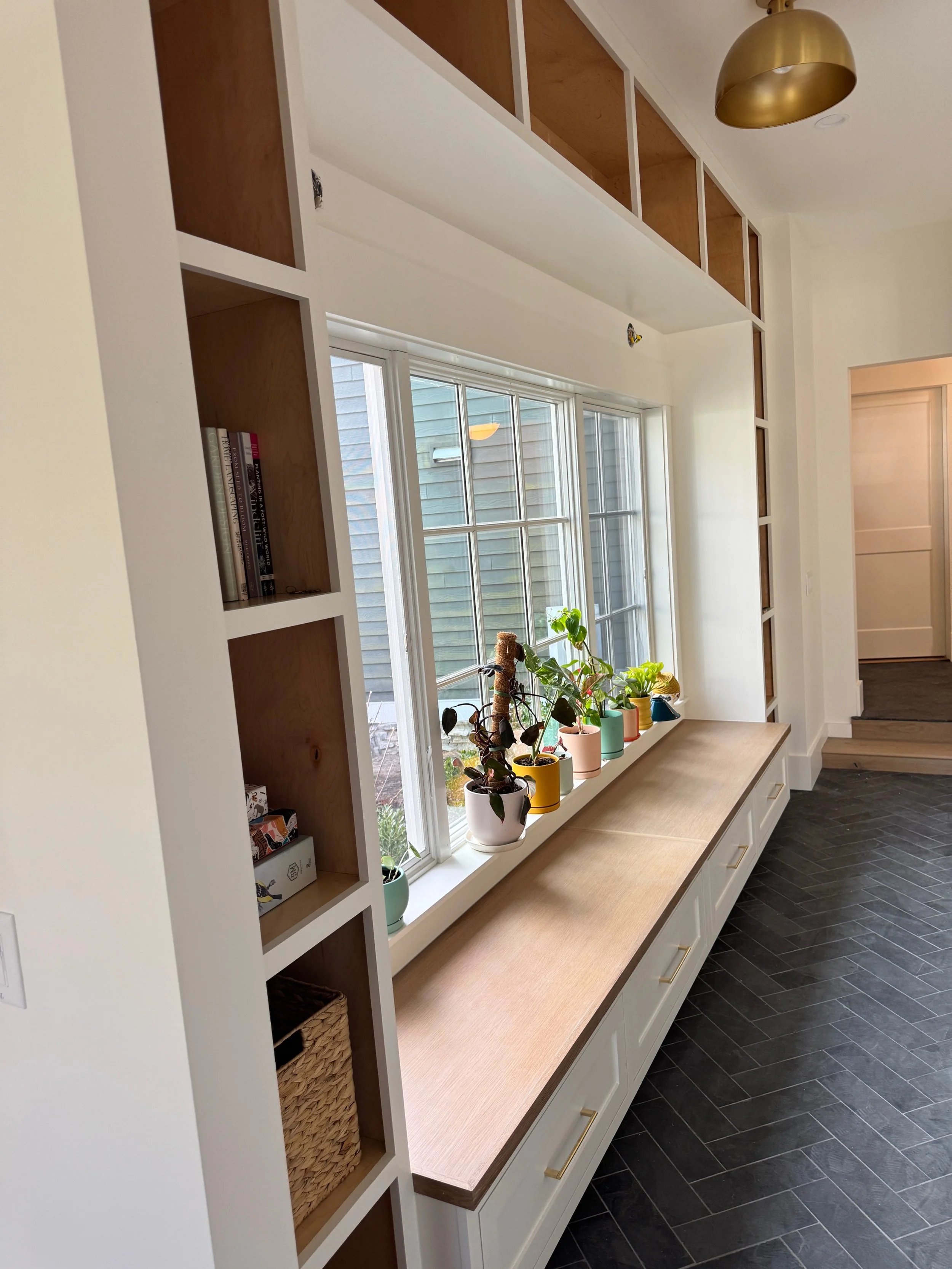 I simply couldn’t be happier with this spectacular series of spaces; a mudroom and storage/display wall and bench in a new addition. The design comes from Garrison Foundry and it was a pleasure and honor to bring the millwork portion to life. So much to love about these, from the inset drawers to the rift sawn white oak bench tops that tie into natural wood elements in the larger spaces. Storage and display and function and utility and clean aesthetic ad infinitum.